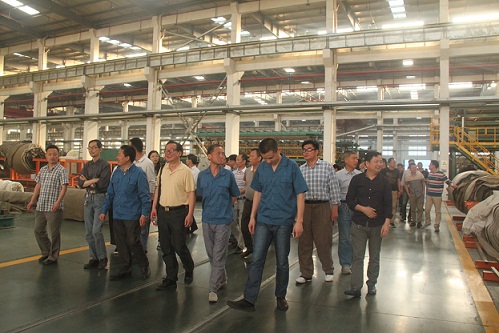 本報訊  5月22日,百余位茅盾中學黨員教師在學校黨委書記錢智躍的帶領下來我公司交流參觀。公司黨委書記董事長沈耿亮、副總經理沈洪發和行政部經理嚴宏斌熱情接待。